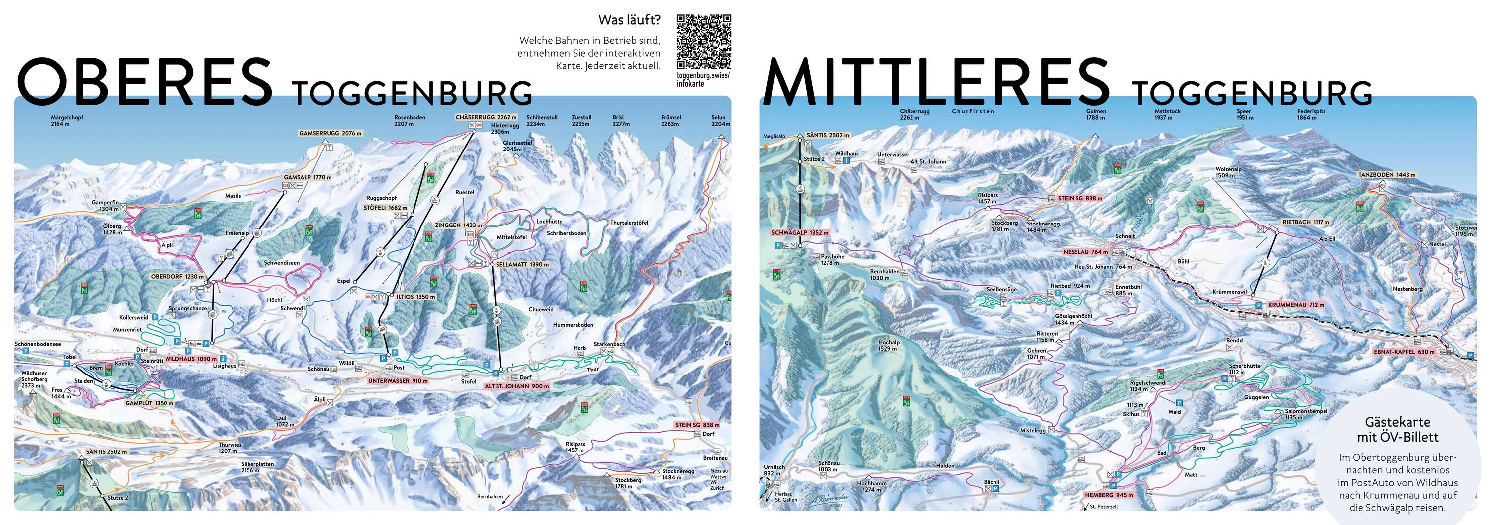 Im Toggenburg bieten folgende 7 Skigebiete einen Pistenplan bzw. eine Panoramakarte an.