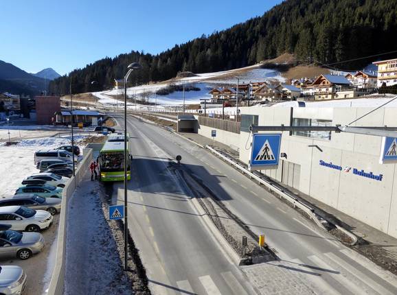 Die Haltestelle Vierschach befindet sich direkt am Skigebiet. Vom Bahnhof Innichen gelangt man mit dem Skibus direkt zu den Liften. - Umfangreiches Skibusnetz