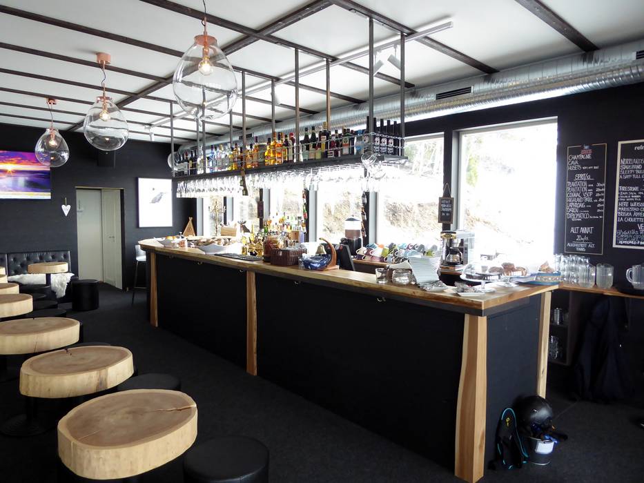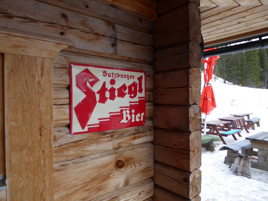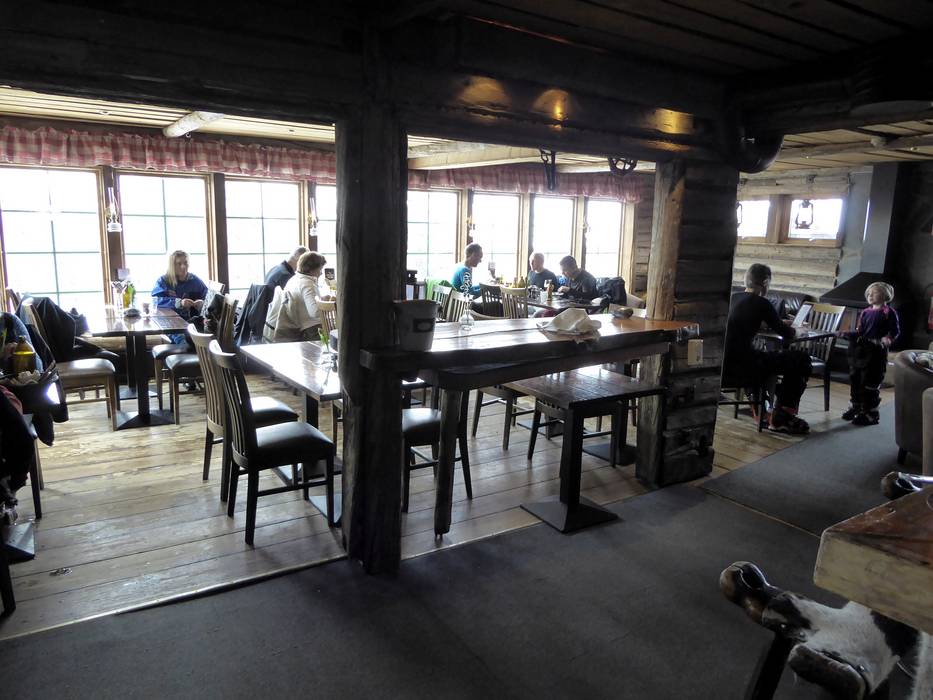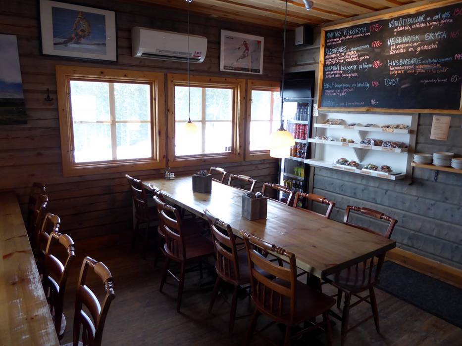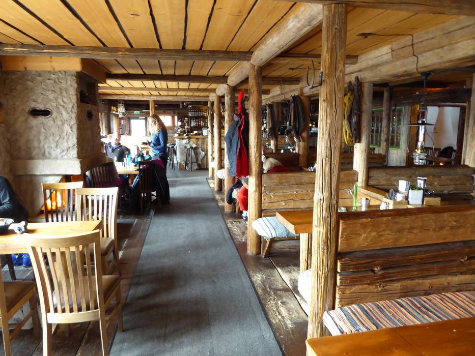 Die urige Hütte aus Holz bietet einen wärmenden Kamin und schwedische Spezialitäten. Die Sonnenterrasse bietet einen fantastischen Blick. Es wird hier das österreichische Stieglbier aus dem Fass ausgeschenkt.