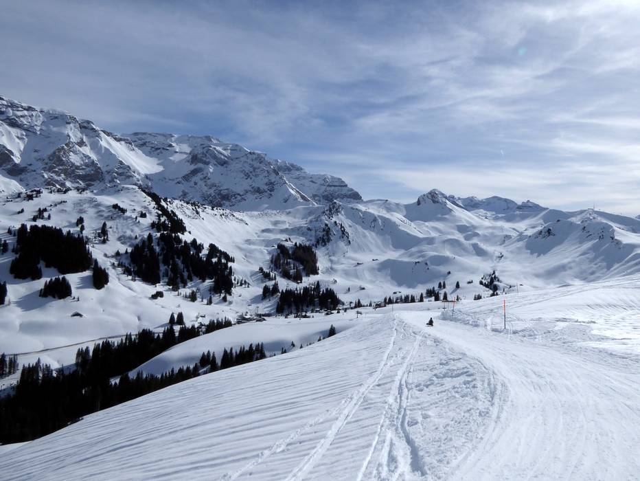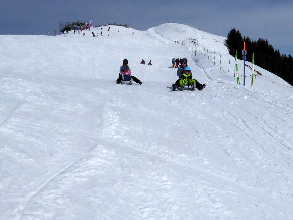 Die Schlittelstrecke vom Sillerenbühl nach Bergläger ist mit fünf Kilometern Länge die längste der Region - und sie hat ein wirklich traumhaftes Panorama. Sie darf nur nachmittags befahren werden, dann hat auch die Schlittelvermietung auf Sillerenbühl geöffnet.