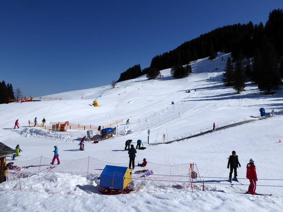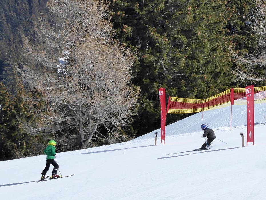 Im Kinderland Geils können die Kleinen auf zwei Brettern die ersten Schritte und Sprünge machen. Dank der verschiedenen Elemente werden sie auf spielerische Weise an den Skisport herangeführt. Es gibt ein Förderband, einen Seillift und einen niedrigen Tellerlift für die schrittweise Entwicklung. Das Skischul-Team präsentiert sich ausgesprochen aufmerksam, behutsam und gut gelaunt. Das Kinderland Geils wird täglich hervorragend präpariert.