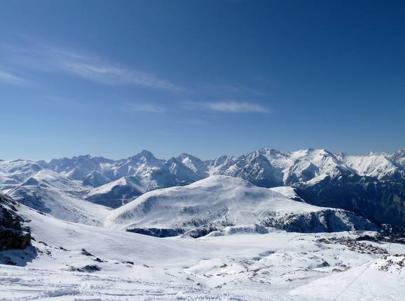 Die Liftanlagen von Alpe d'Huez erschließen das weitläufige und abwechslungsreiche Gelände zwischen den fünf Orten des Skigebiets. Zahlreiche lange Abfahrten führen die Wintersportler vom höchsten Punkt des Skigebiets, dem Pic Blanc mit seinen 3330 Metern Höhe, bis zu den in bewaldeten Tälern gelegenen Skiorten. Alpe d'Huez zählt zu den 10 größten Skigebieten in Frankreich.
