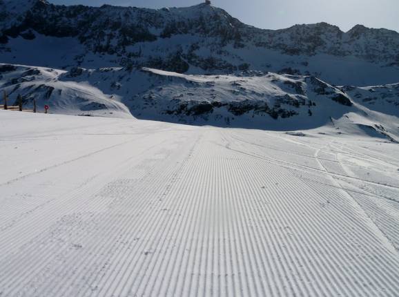 Auch bei hartem Schnee sind die Abfahrten angenehm eben und buckelfrei präpariert. Viel befahrene Stellen sind immer sorgfältig vorbereitet und sehr gut passierbar. Gefahrenstellen werden abgesperrt. Bei Neuschnee werden häufig nicht alle Pisten sofort präpariert. An den Liftstationen wird allerdings auf Schildern aktuell und zuverlässig auf unpräparierte Abfahrten hingewiesen. Mit etwas Aufmerksamkeit landet also niemand unabsichtlich im Tiefschnee.