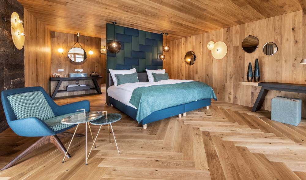 Behagliche Doppelzimmer, luxuriöse Spa-Suiten, gemütliche Chalets und stylishe Lofts bieten ein Wohlfühlerlebnis. Die Zimmer, Suiten und Chalets verfügen über eine sehr großzügige Zimmerfläche und sind mit höchstem Komfort ausgestattet. Der erlesene Einrichtungsstil mit viel Holz und Stein bietet eine alpine Wohnkultur mit Luxus und Harmonie.