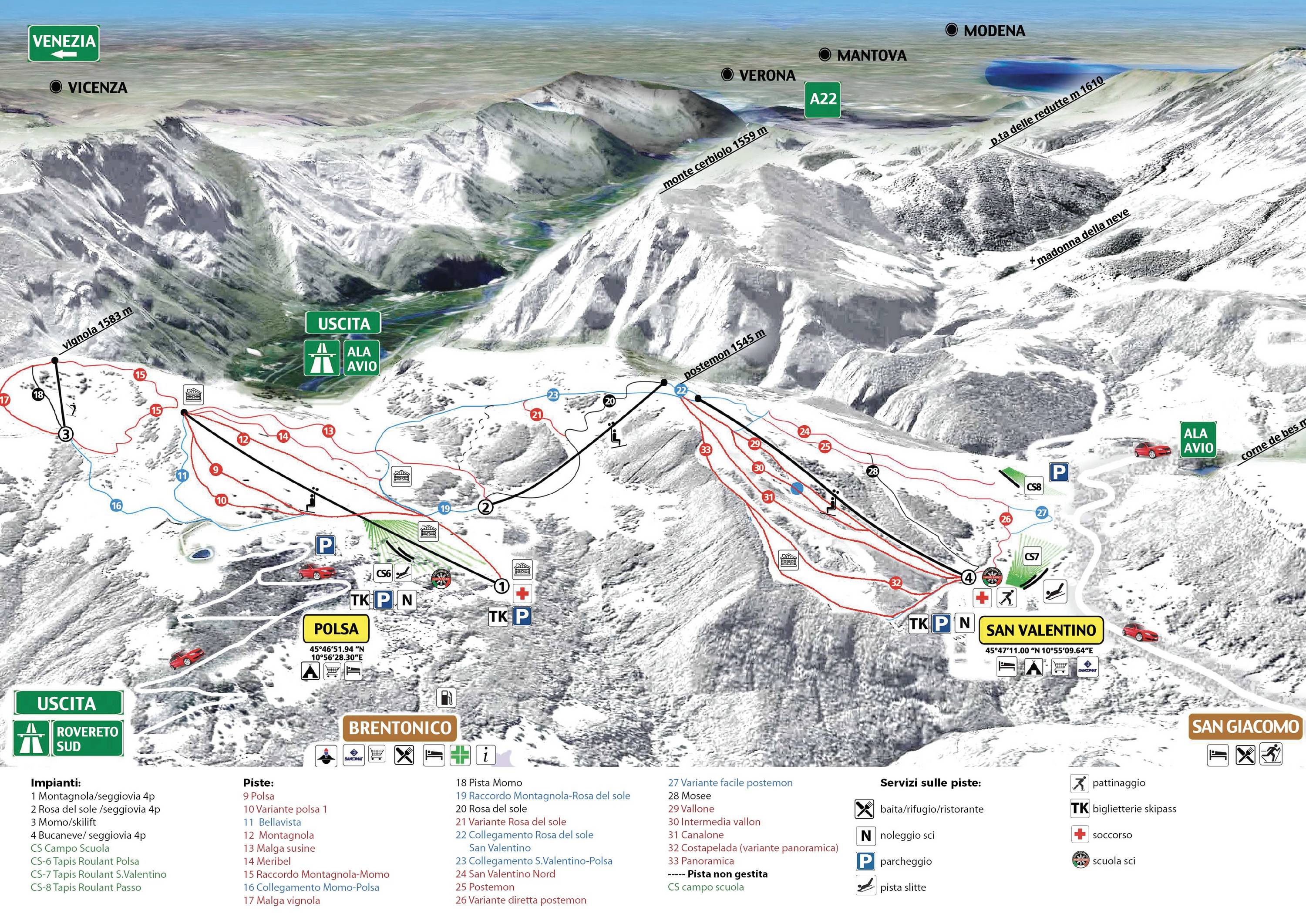 Pistenplan Altopiano di Brentonico – Polsa/San Valentino Saison 2024/2025