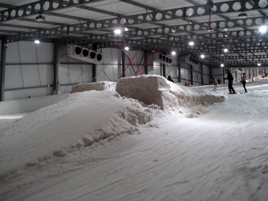 Snowboarder fühlen sich in der Skihalle wohl. Es gibt zwar keinen richtigen Funpark oder eine Halfpipe, aber auf der 620m langen Piste gibt es Wellen und eine Schanze.