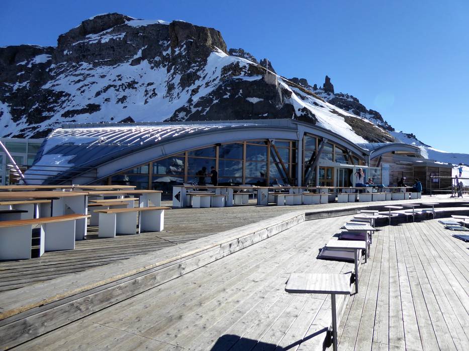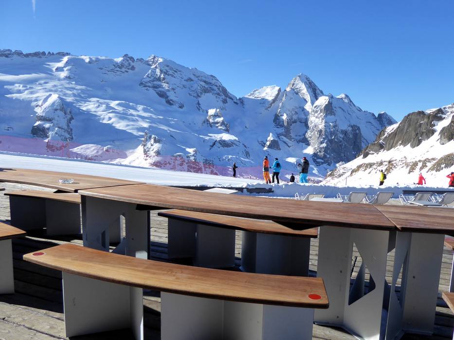 Im hinteren Teil des Rifugio Luigi Gorza befindet sich ein Gourmetrestaurant. Das Viel dal Pan ist in solcher Höhe in den Dolomiten einzigartig. Der Blick von der Sonnenterrasse geht zur Marmolada.