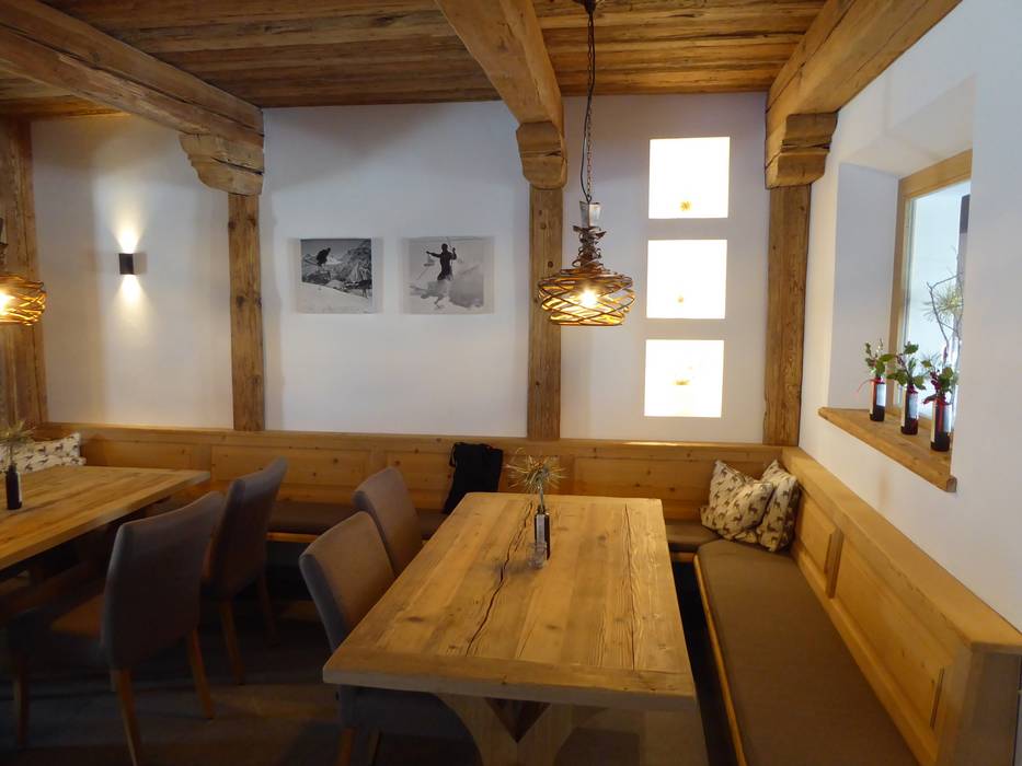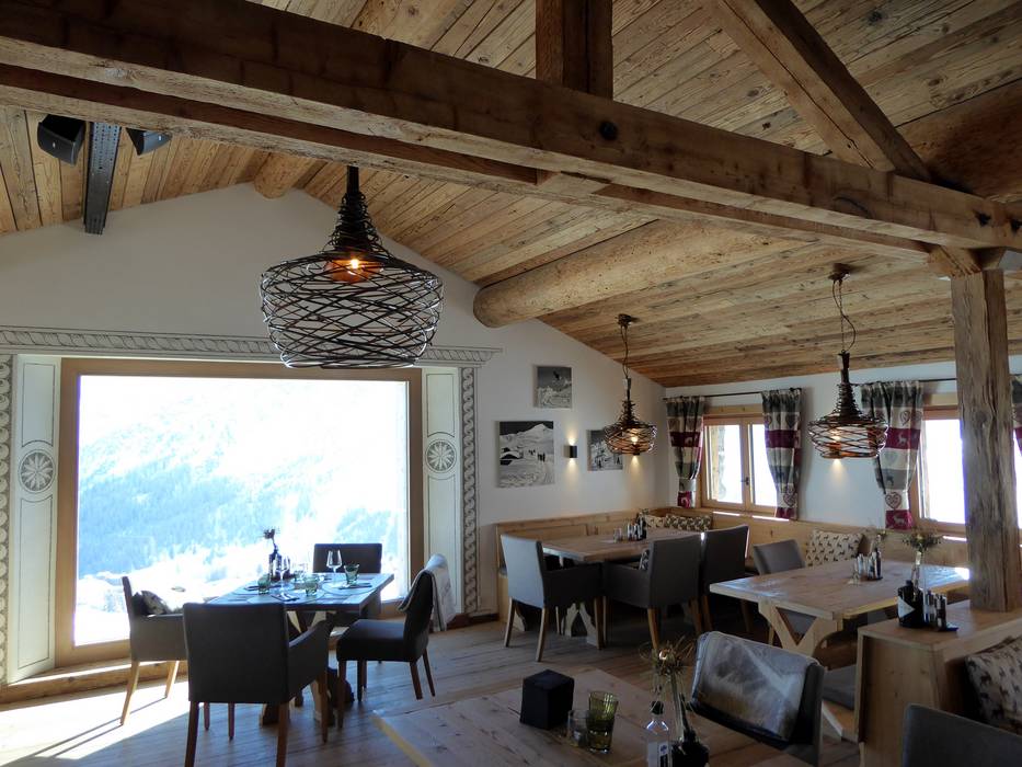 Exklusive Gerichte in einem internationalen Ambiente bietet die Mottahütte. An der Bar lässt sich zudem eine ausgewählte Weinkarte oder Champagner genießen.