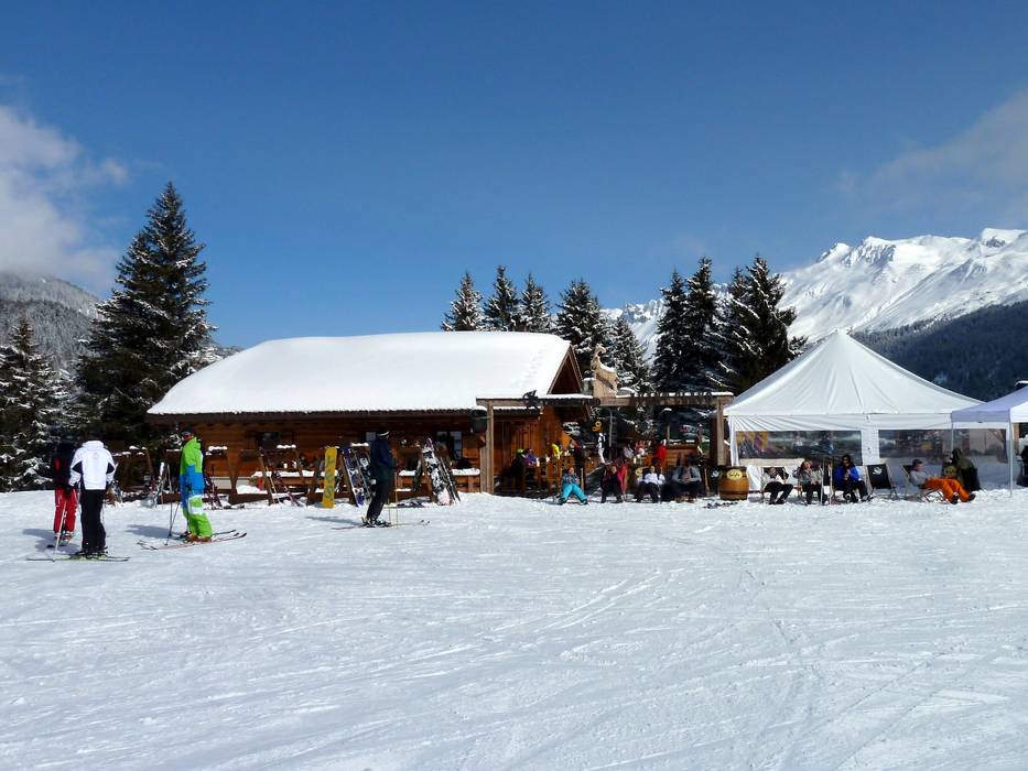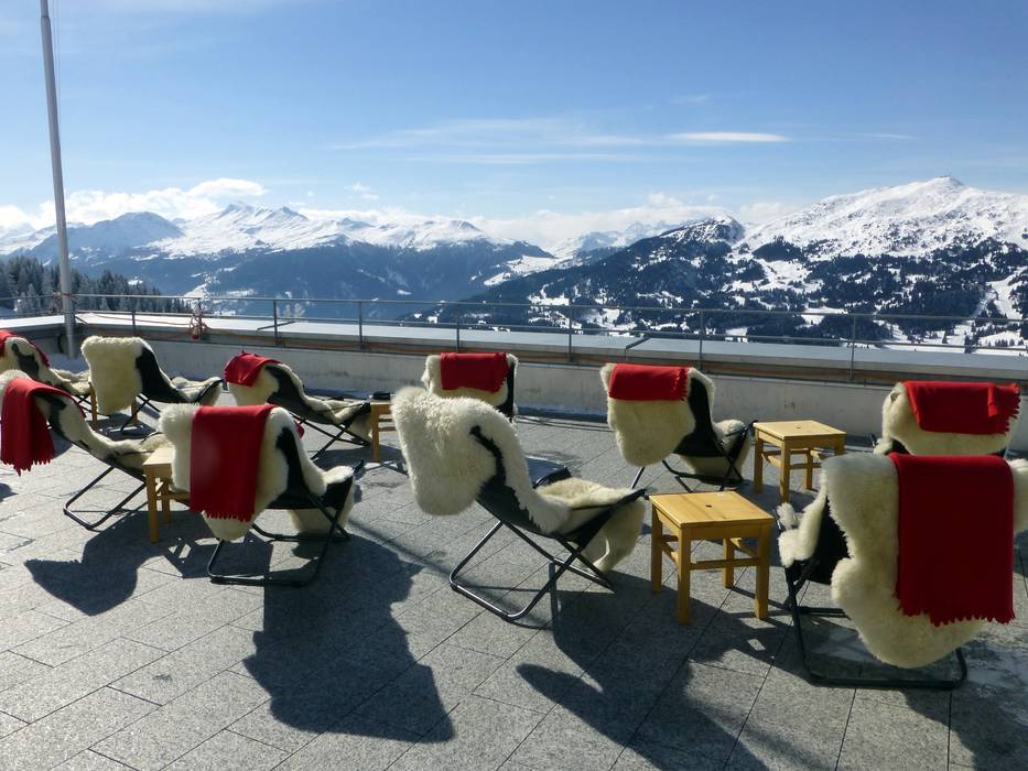 Die Carmennahütte in Arosa bietet eine tolle Atmosphäre und einen guten Startpunkt Richtung Après-Ski im Munggaloch. Bei schönem Wetter warten die Sonnenstühle auf der Terrasse.
