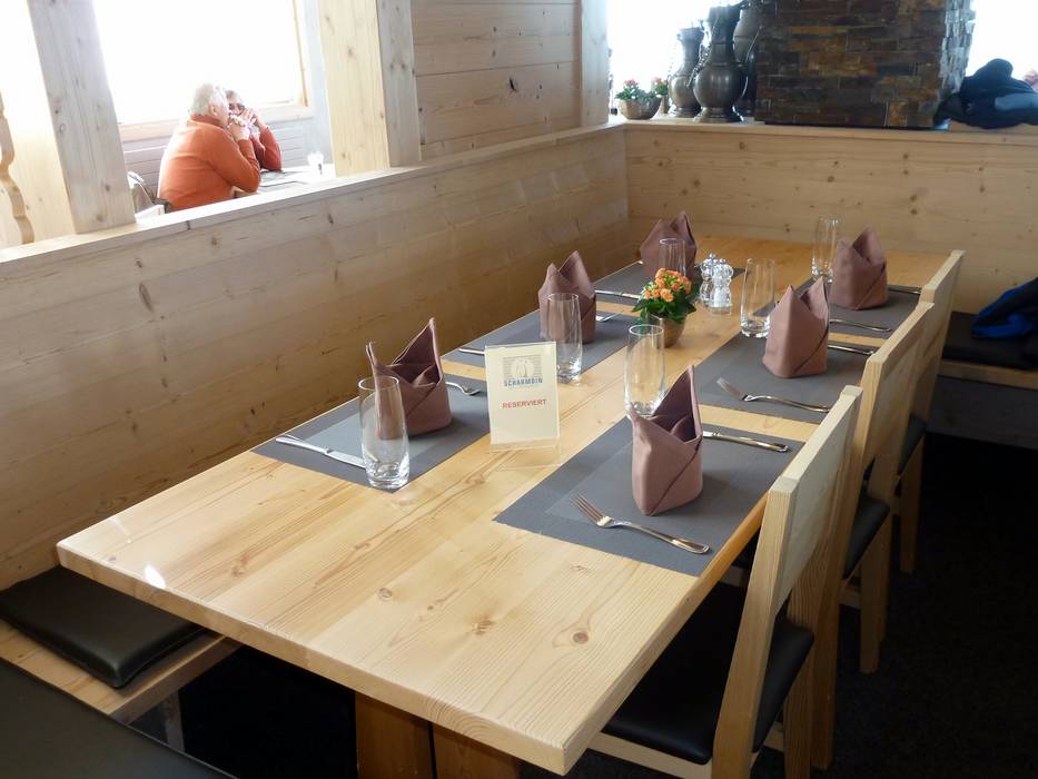 Das Bergrestaurant Scharmoin bietet neben einem SB-Bereich auch ein Grill-Restaurant im Obergeschoss mit Bedienung, ausgewählter Küche und Weinauswahl. Eine Reservierung vorab ist zu empfehlen.