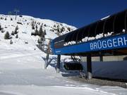 Die neue 6er-Sesselbahn Brüggerhorn ersetzt den 2er-Sessellift Brüggerhorn in Arosa. Die neue, moderne Liftanlage von Bartholet BMF fährt rund doppelt so schnell und befördert auch doppelt so viele Wintersportler. Das Design stammt aus dem Porsche Design Studio.