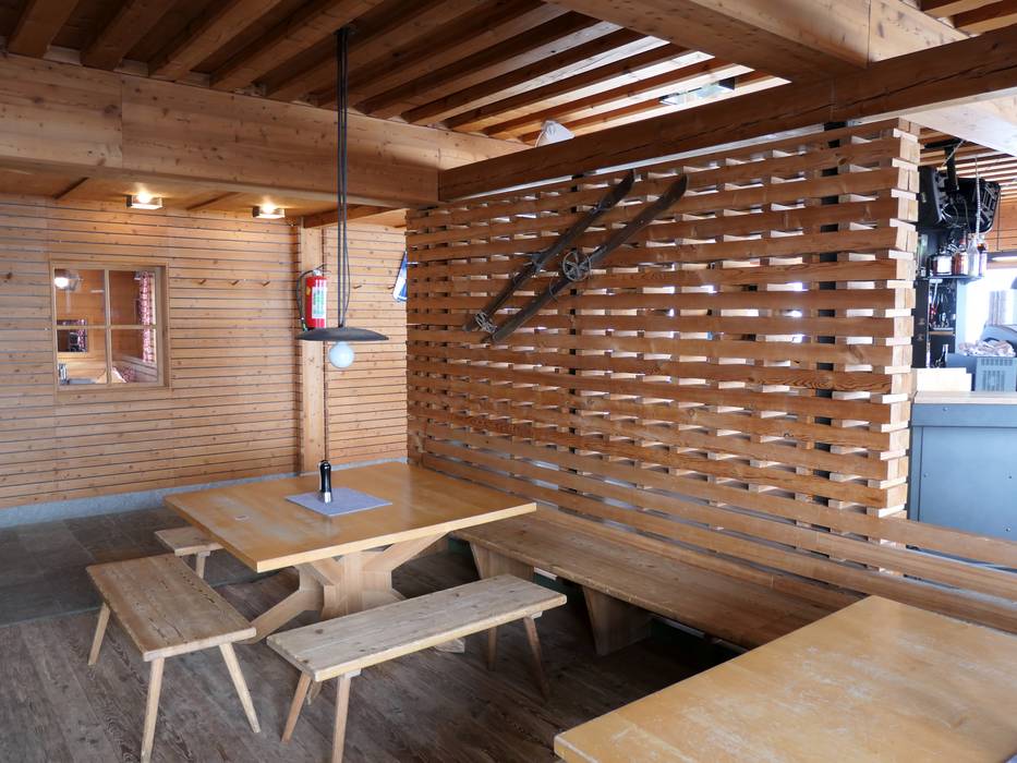 Zentral im Skigebiet gelegen mit bestem Blick auf den Golden Roofpark. Tolle Sonnenterrasse und schöne moderne Holzarchitektur. Gute Suppen und klassische Hütten-Auswahl im SB-Restaurant und im Bedienbereich.