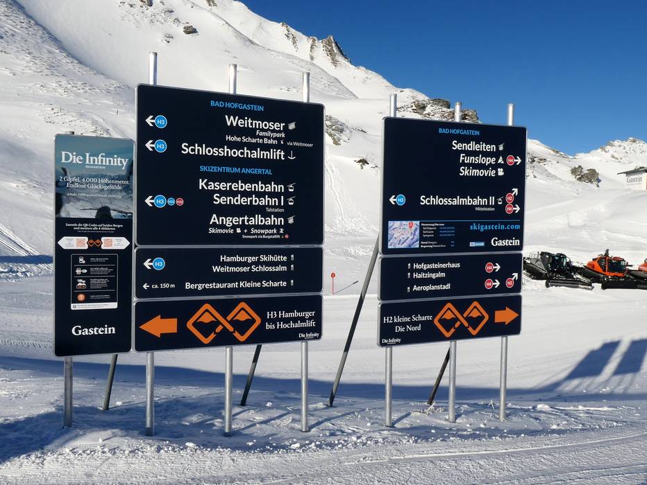 Panoramainfotafeln mit aktuellen Informationen findet man an allen Berg- und Talstationen und im Skigebiet an relevanten Stellen. Die Multimedia-Panoramatafeln und Monitore sind sehr modern. Die Ausschilderung ist in der Regel sehr gut. Die wichtigen Ziele Bad Gastein, Bad Hofgastein und das Skizentrum Angertal sind sehr gut angegeben.