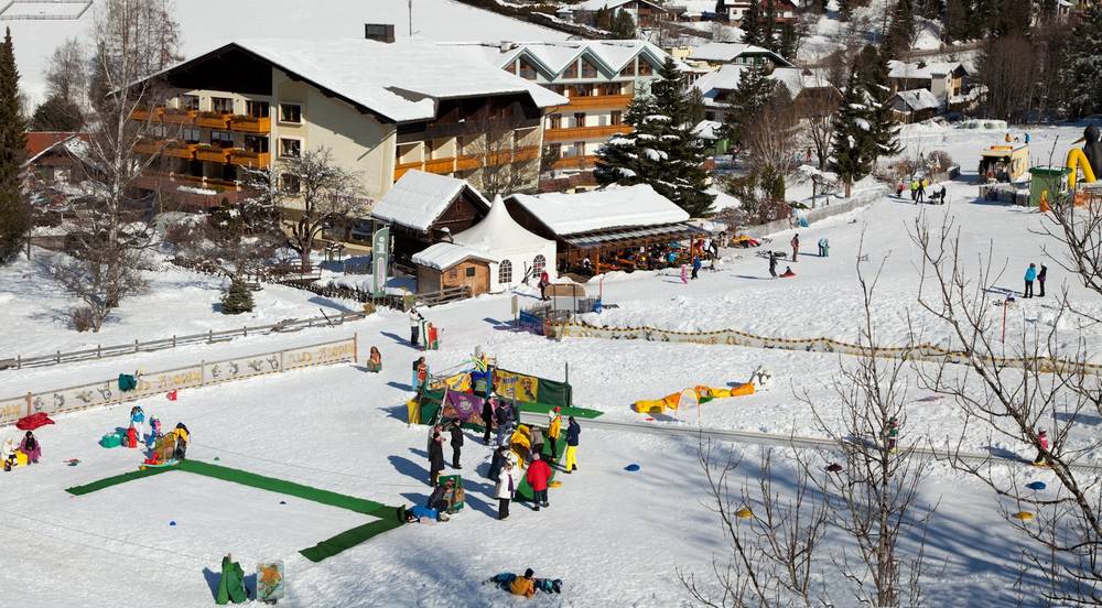 Der Bachlift mit dem Übungsareal der (Kinder-)Schischule befindet sich direkt an unserem Hotel, die Maibrunnbahn mit Franz-Klammer-Abfahrt, die Kaiserburgbahn und die Sonnwiesenbahn mit den Verbindungsliften nach St. Oswald sind ebenso zu Fuß oder per kostenlosem Skibus (Haltestelle vor dem Haus) erreichbar! Ob in St. Oswald, am Strohsack oder auf der Kaiserburg - bei uns erleben Ski- und Snowboardfahrer:innen herrlichen Pistenspaß!