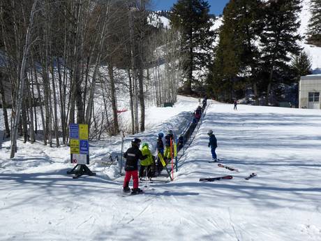 Am Bald Mountain finden Familien mit kleinen Kindern an der Talstation River Run Plaza das Übungsgelände Kinderspielplatz mit Förderband vor. Einige Pisten am Berg sind als Family Areas ausgewiesen und somit leicht und gut präpariert. Generell sind Familien in Sun Valley im rund 4 km entfernten Skigebiet Dollar Mountain bestens aufgehoben. Es gibt dort ein erstklassiges Angebot an leichten und breiten Pisten sowie viel Platz zum Üben.