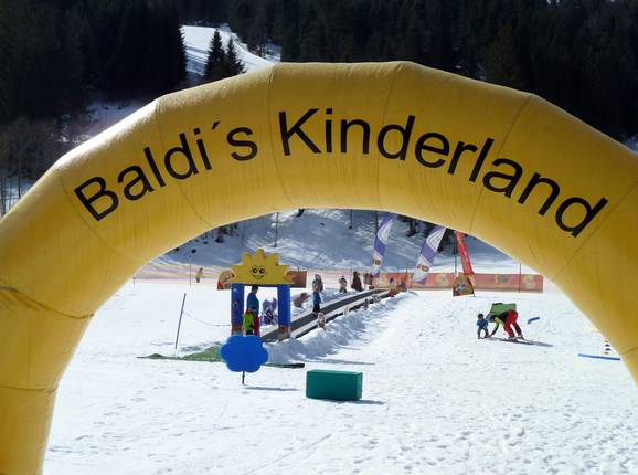 Direkt an der Talstation der Schelpenbahn befindet sich das Baldi' Kinderland der Schneesportschule Balderschwang Hochallgäu. Hier warten ein Förderband und lustige Figuren auf die Kleinen.