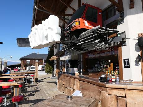Über der Après-Ski-Bar thront eine ausgediente Pistenraupe.
