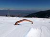 Der Snowpark liegt sonnenverwöhnt an der Sesselbahn Plato. Große und kleine Kicker, Boxen und Rails sorgen für Adrenalin bei Einsteigern und Profis.