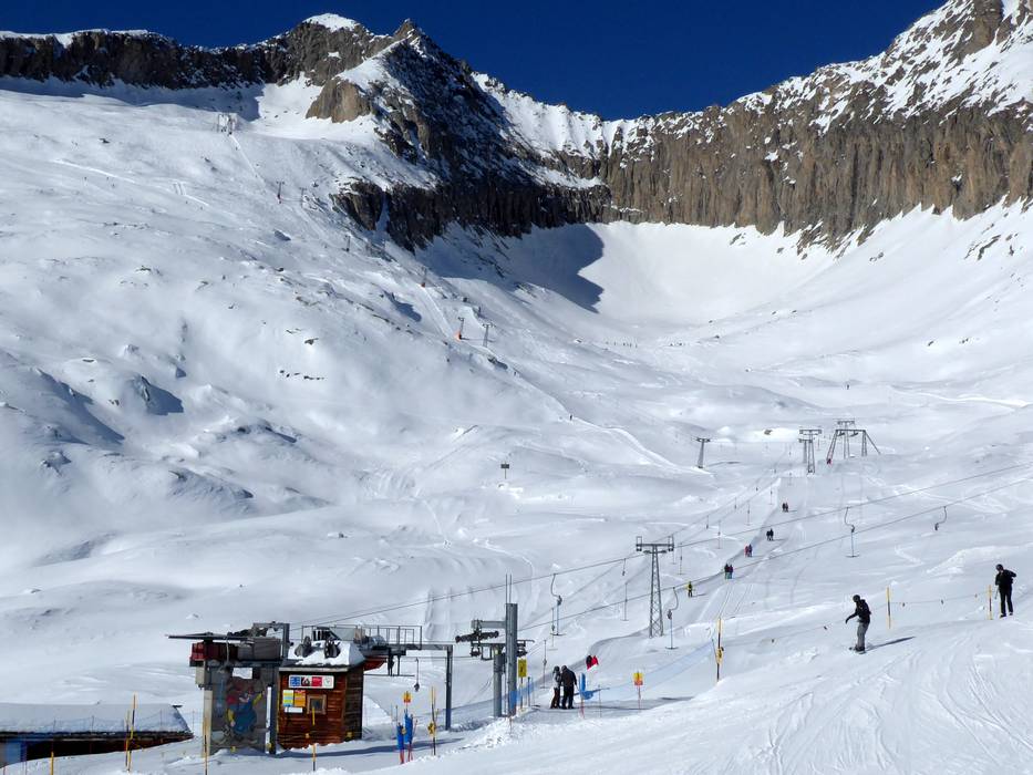 Die vergletscherte Südflanke des Sparrhorns bildet das eine Skigebiet. Die durch einen 150 m langen Tunnel erschlossene Unterbächseite stellt seit Eröffnung des Durchgangs 1984 eine attraktive Alternative für anspruchsvolle Skifahrer dar.