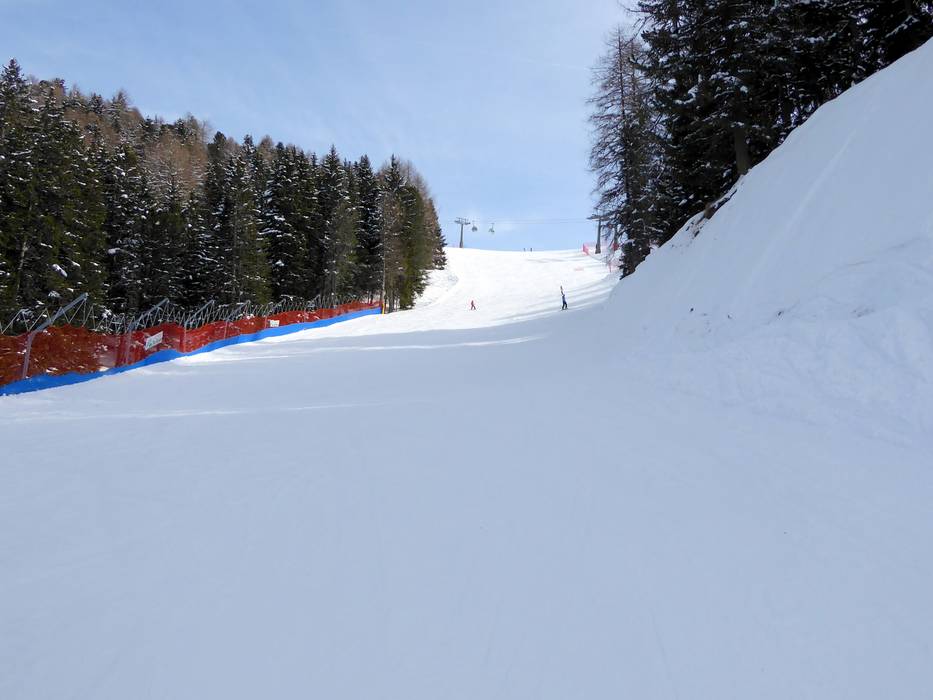 Die schwere Piste führt von der Bergstation Buffaure zur Talstation nach Pozza di Fassa.