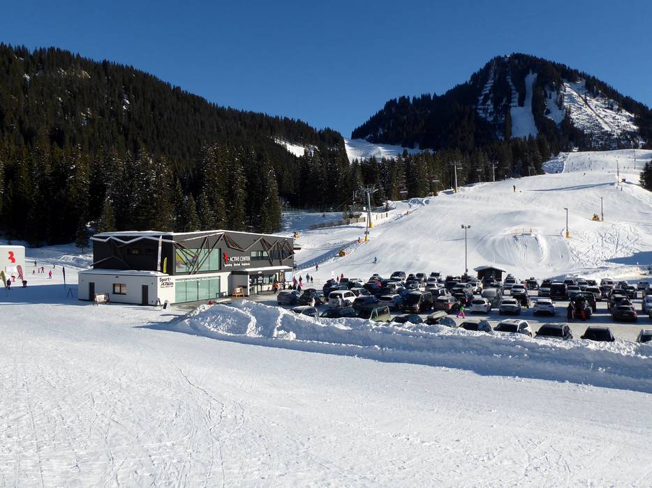 - Parkplatz direkt am großen Anfängergelände von Berwang.