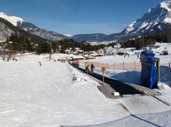 Familien sind in Biberwier gut aufgehoben. Sie profitieren von der breiten und leichten Talabfahrt sowie dem Kinderland und dem Förderband in Blickweite.