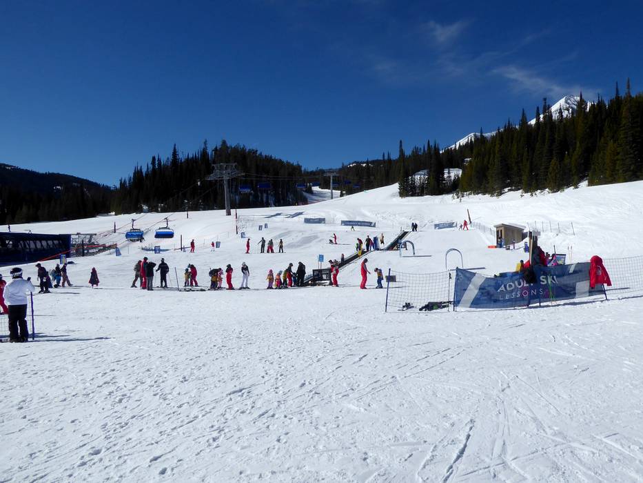 Direkt am Montage Big Sky Hotel in Spanish Peaks gibt es einen schönen Übungshang mit Förderbändern. Auf Wunsch kann man hier die Mountain Sports School in Anspruch nehmen und Skilehrer buchen.