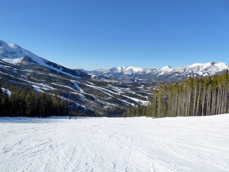Das Skigebiet Big Sky bietet endlose Pisten und Abfahrten am Spirit Mountain, Andesite Mountain und Lone Mountain. Im unteren Bereich führen die Pisten durch Waldschneisen zu Tale, während man im oberen Bereich am Lone Mountain durch extrem steile Felsrinnen fahren kann. Anfänger und Kinder lieben die breiten Pisten im unteren Bereich, während die Könner die vielen Buckelpisten, Tiefschneeareale und Felsrinnen im oberen Teil des Skigebiets bevorzugen. Man hat unendliche Möglichkeiten die vielen unterschiedlichen Pisten und Abfahrten zu erkunden. Zudem hat man sehr oft das tolle Panorama des Lone Mountains vor sich. Zu allen Unterkünften führen Ziehwege und bieten somit ein perfektes Ski-in/Ski-out.