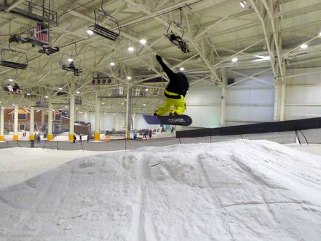 Die Skihalle Big Snow American Dream bietet einen schönen Snowpark unterhalb der Sesselbahn.