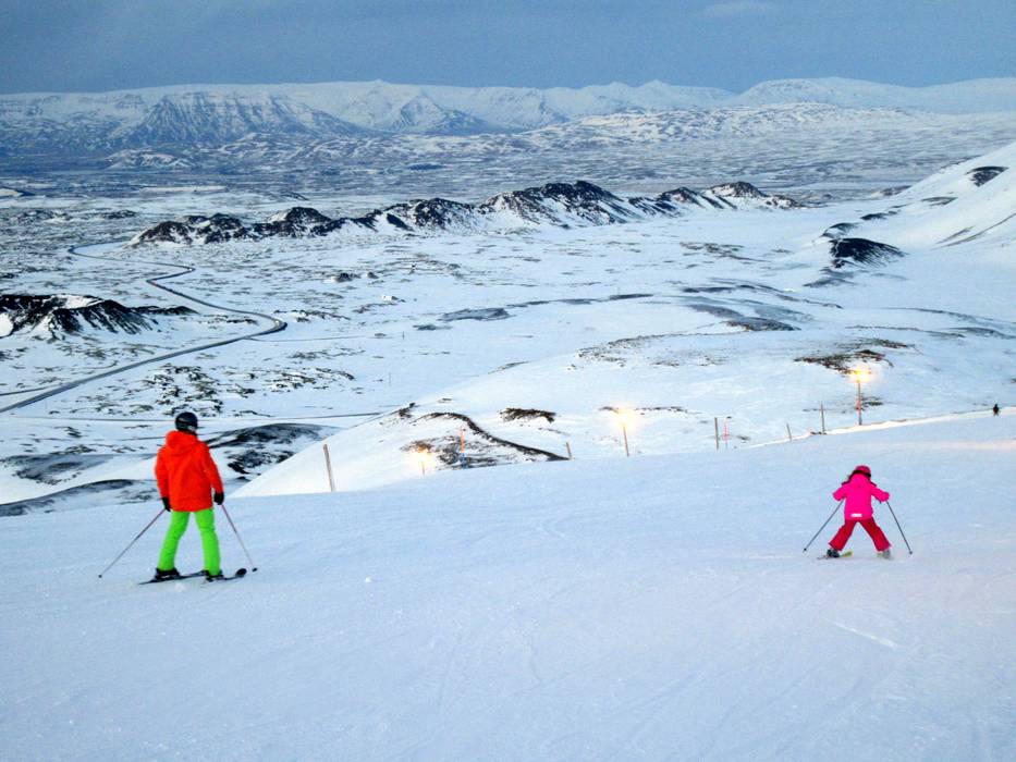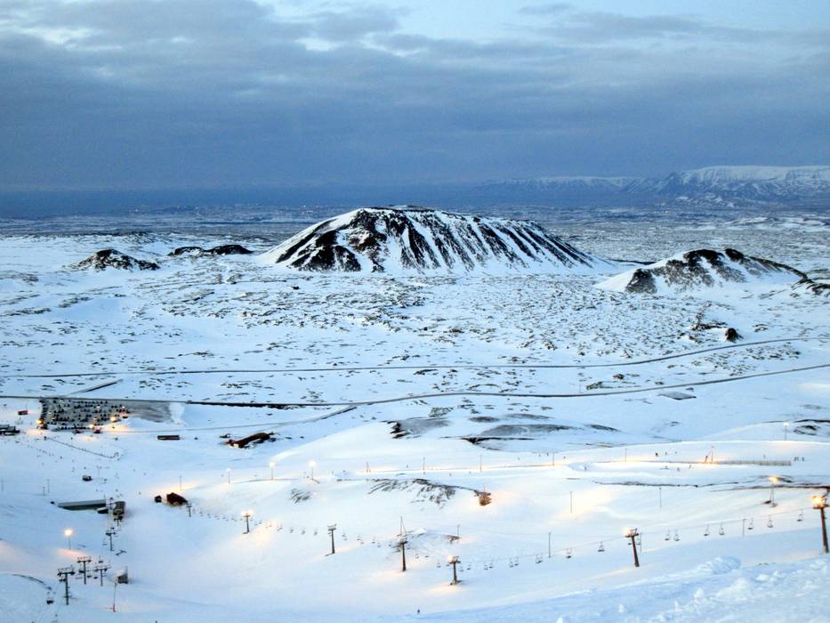 Das Skigebiet Bláfjöll befindet sich in Südisland (Island).