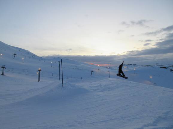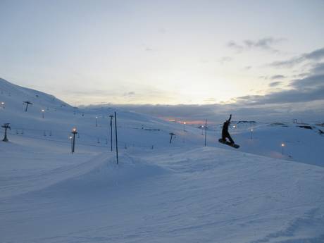 Das Skigebiet Bláfjöll bietet einen kleinen Snowpark für die Freestyler.