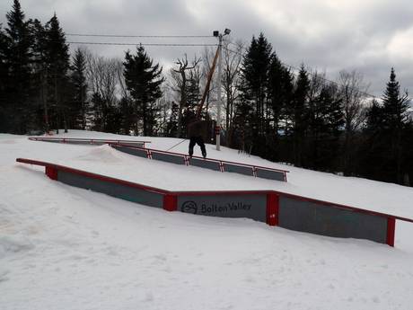 Bolton Valley bietet 3 beleuchtete Snowparks für Anfänger und Fortgeschrittene.
