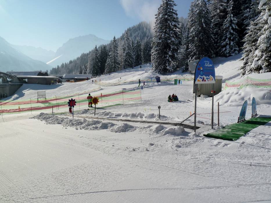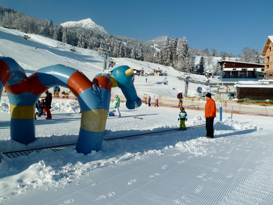 Das Kinderland liegt direkt an der Bergstation der Dorfbahn und ist mit zwei Förderbändern gut ausgestattet.