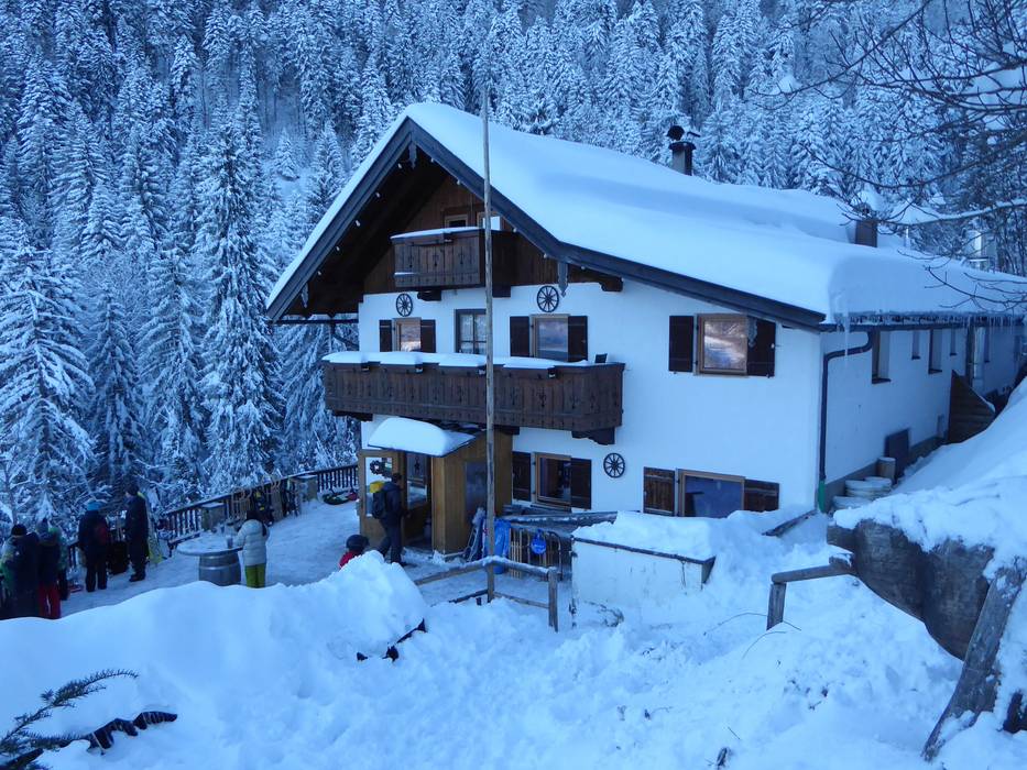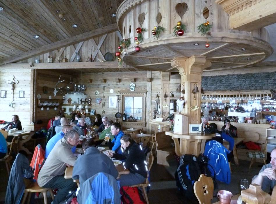 Hier kann man dem Hüttenwirt beim Kochen über die Schulter schauen. In der gemütlichen Stube oder auf der Sonnenterrasse wird man mit bayerischen Spezialitäten versorgt. Sehr zu empfehlen sind die frischen Weißwürste mit Brezn.