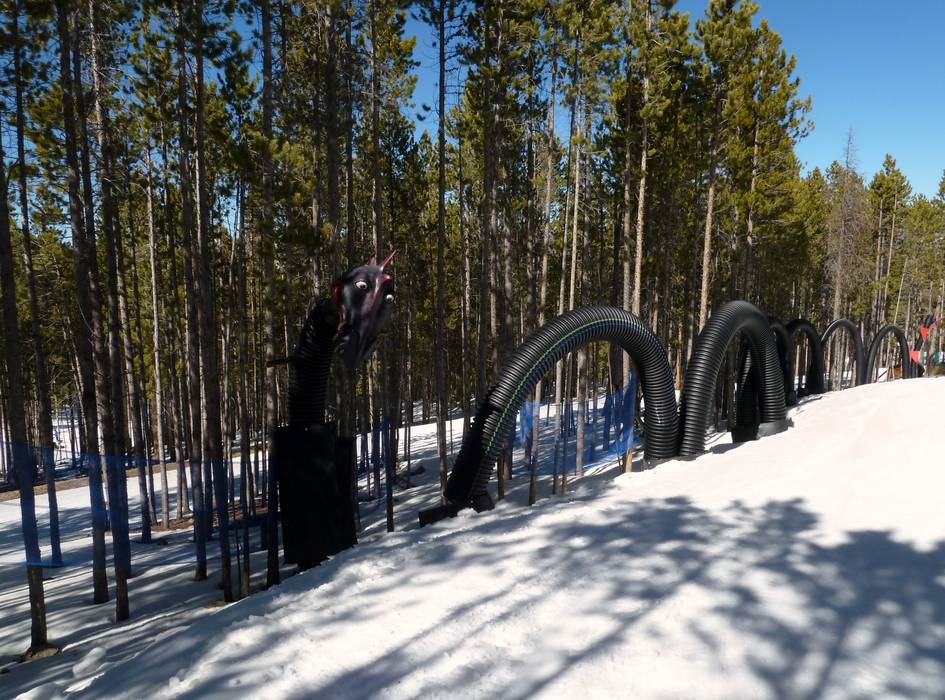 Der Dragon Trail ist ein Piste nur für Kinder. Man fährt durch lustige Häuser und wird dabei von einem Drachen begleitet.