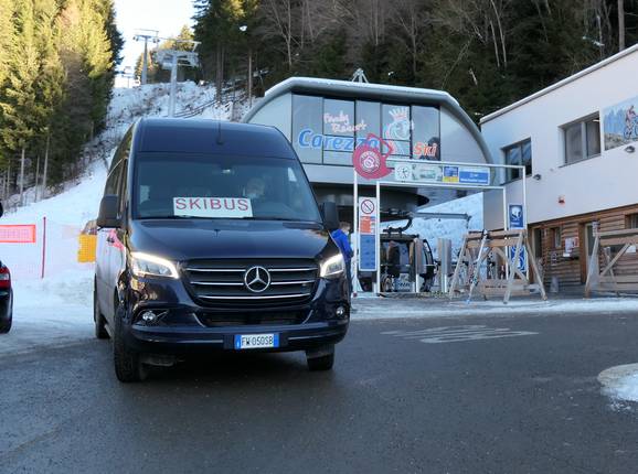 Ab dem Bahnhof Bozen gibt es mehrmals täglich Busverbindungen in das Skigebiet Carezza. - Skibusse