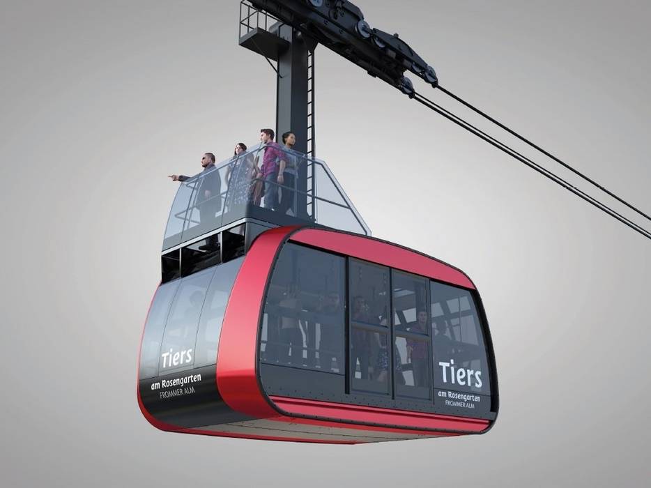 Dank der neuen Tierser Seilbahn kann man das Hochplateau unterm Rosengarten nun autofrei erleben. Südtirols einzigartige Cabrio-Bahn bietet eine neue Anbindung von St. Zyprian in der Gemeinde Tiers zur Frommeralm im Skigebiet Carezza. Die Anfahrt mit dem Kraftfahrzeug über den Nigerpass zum Skigebiet Carezza entfällt damit. Zur Talstation führt keine Piste und man schwebt wieder mit der Seilbahn zur Talstation.