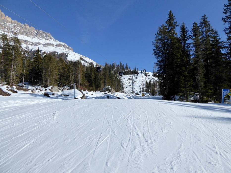 Erst schwarz dann rot entlang der 10er-Gondelbahn König Laurin - Piste Nr. 30 Tschein
