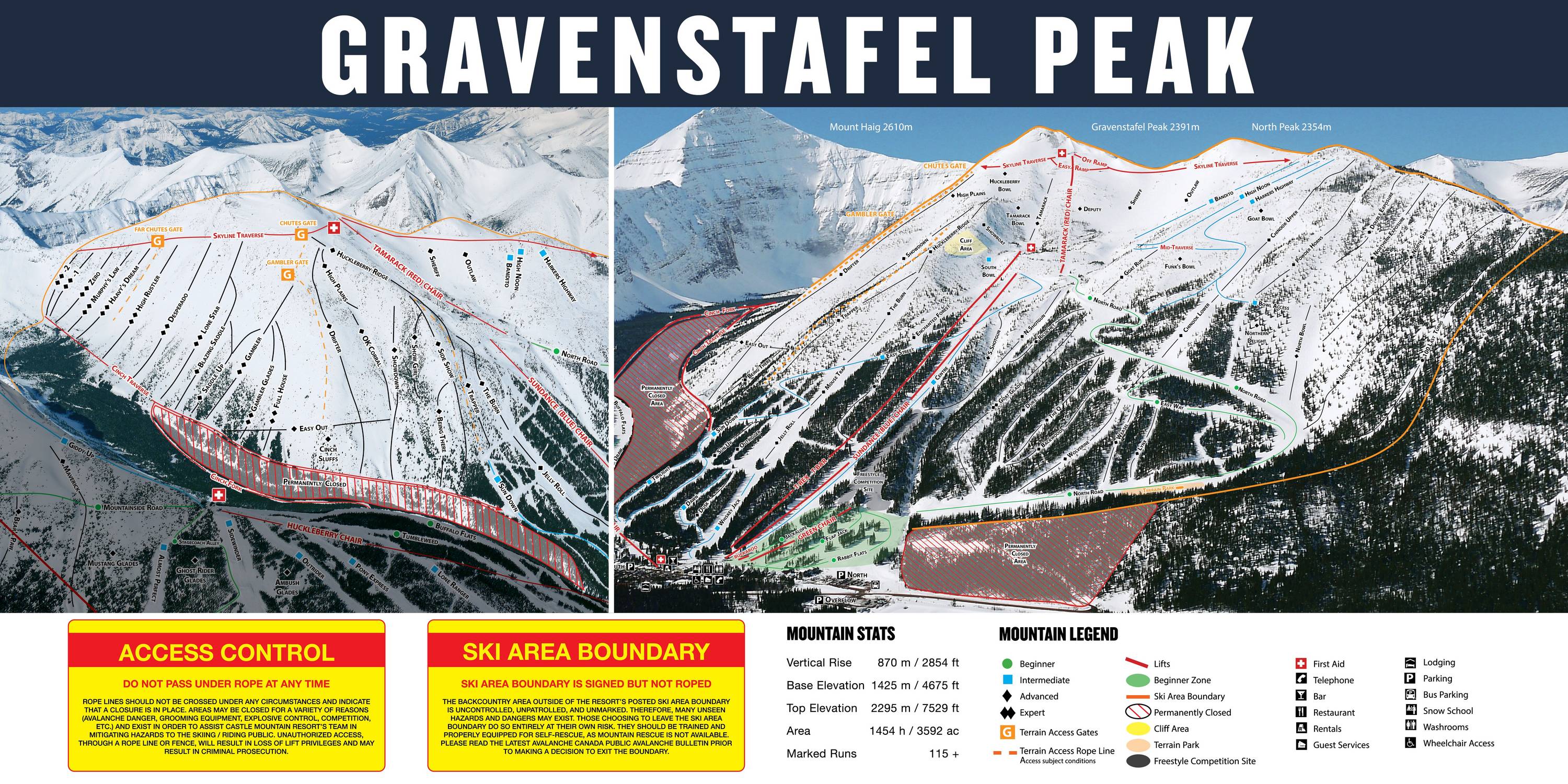Orientierung (Pistenplan, Informationstafeln, Ausschilderung) und Sicherheit im Skigebiet Castle Mountain