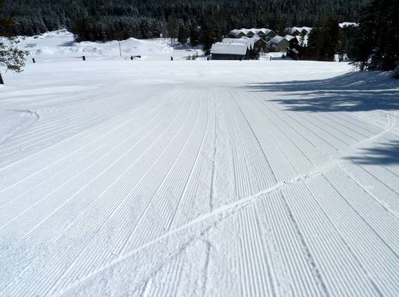 Im Skigebiet Castle Mountain werden die Pisten mit viel Liebe zum Detail präpariert. Die ganz steilen Abfahrten am Gravenstafel Mountain und am North Peak können nicht präpariert werden.