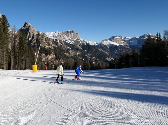 Anfänger können am Förderband, im Skischulgelände oder an der Sesselbahn Campo Scuola Ciampedie üben. Die Sesselbahn erschließt eine sehr leichte Piste. Fortgeschrittene Anfänger können von Ciampedie über leichte Pisten bis ins Tal nach Pera di Fassa fahren. Auch der höchste Punkt Pra Martin im Skigebiet bietet eine leichte Abfahrt. Nur die Talabfahrt nach Vigo di Fassa ist mittelschwer, sehr lang und damit für Anfänger nicht geeignet.