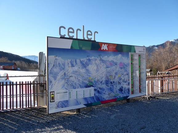 Orientierung (Pistenplan, Informationstafeln, Ausschilderung) und Sicherheit im Skigebiet Cerler