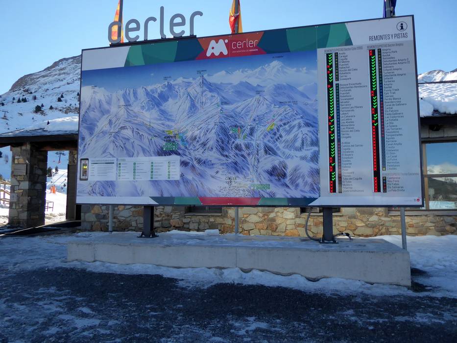 An den Einstiegspunkten in Cerler und Ampriu findet man große Informationstafeln mit Pistenplan und tagesaktuellen Informationen. Im Skigebiet selber gibt es auch Pistenpläne. Die Pisten sind alle gut ausgeschildert und sehr gut markiert. Somit findet man sich auch bei schlechten Sichtverhältnissen oder Nebel immer zurecht.