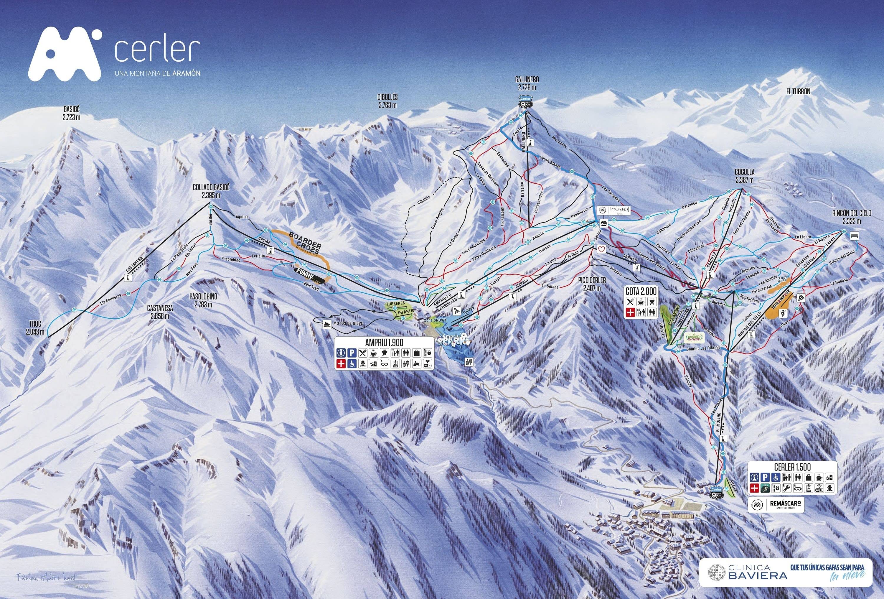 Cerler (1 km), Benasque (0,5 km), Ampriú (0,1 km) Orte am Skigebiet