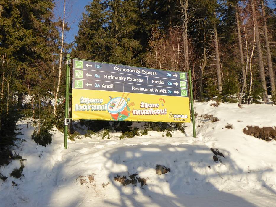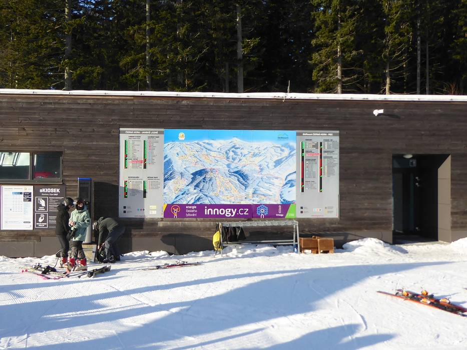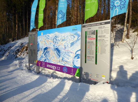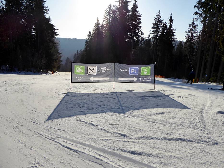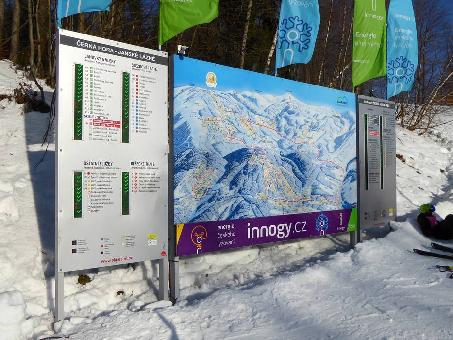 Orientierung (Pistenplan, Informationstafeln, Ausschilderung) und Sicherheit im Skigebiet Černá hora – Janské Lázně
