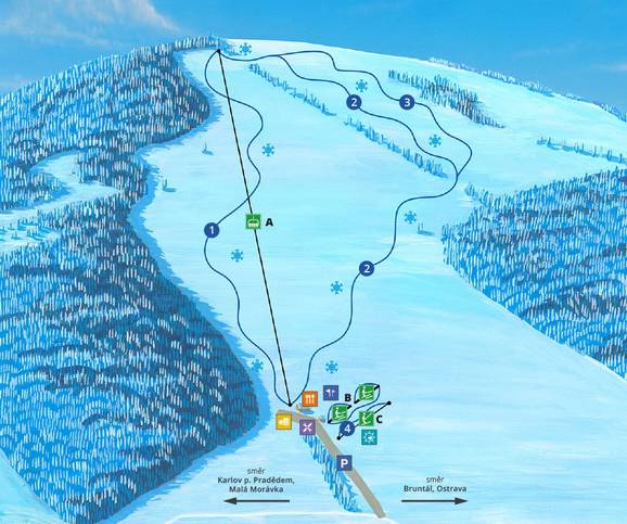 Pistenplan Čerťák – Václavov u Bruntálu Saison 2025/2026