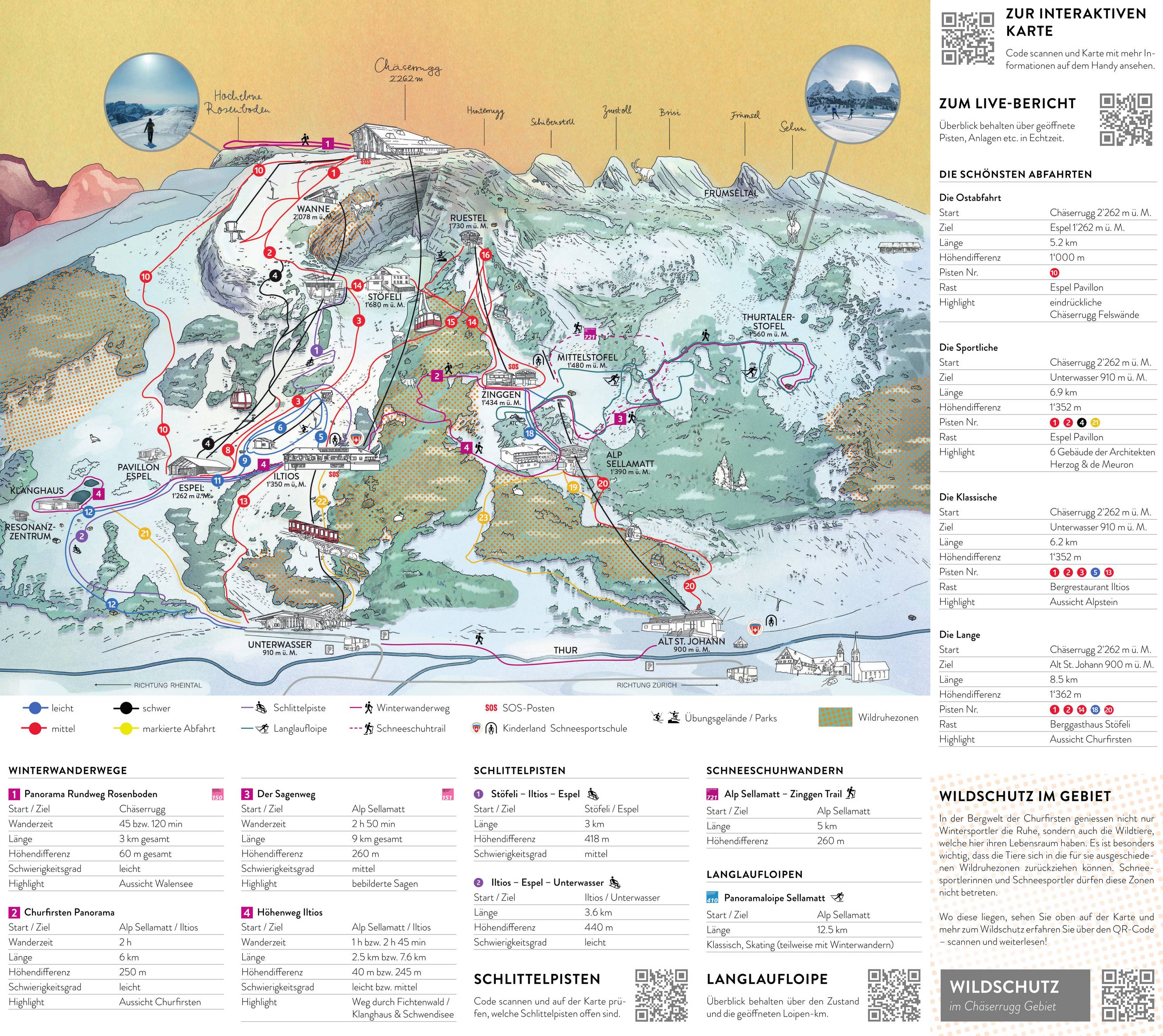 Pistenplan vom Skigebiet Chäserrugg – Unterwasser/​Alt St. Johann (Toggenburg)