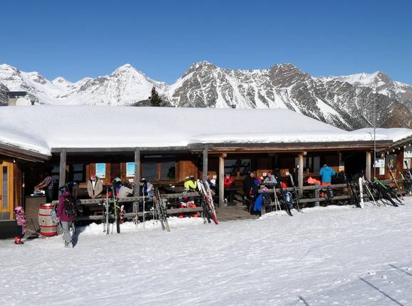 Das Après-Ski im Skigebiet Cima Piazzi ist eher gemütlich. Man kann den Tag auf den Skihütten oder an den Talstationen ausklingen lassen.
