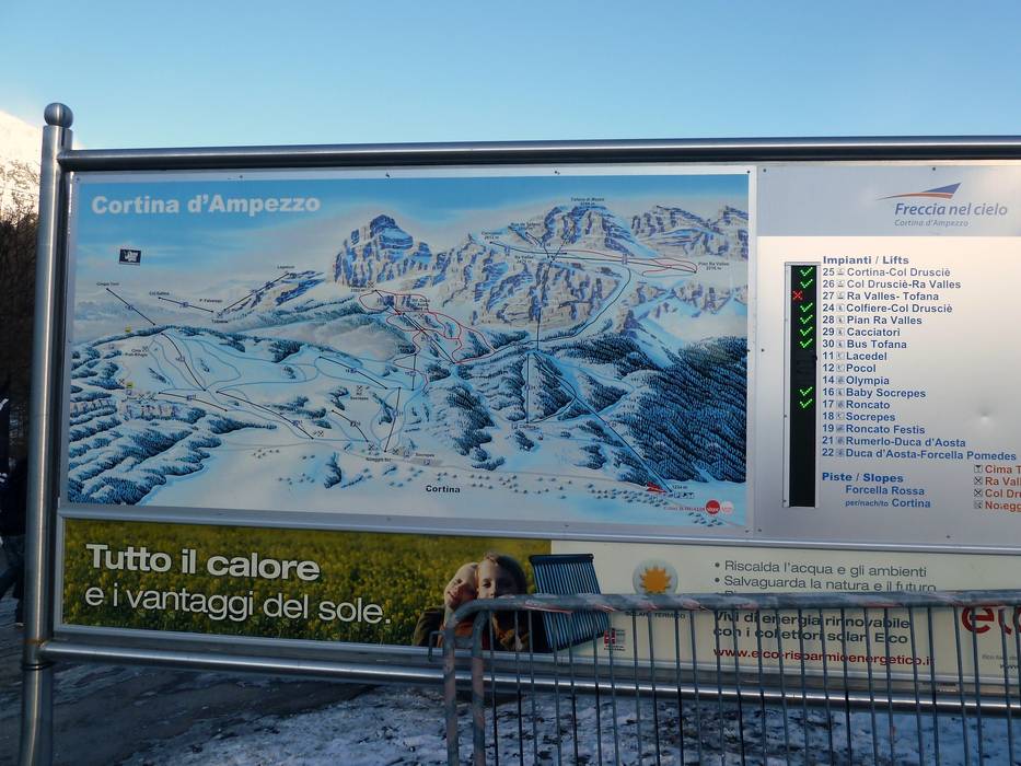 | Hinweis: Die Öffnungszeiten sind generelle Angaben vom Skigebiet Cortina d'Ampezzo und können je nach äußeren Bedingungen, Wochentagen, Schulferien und Feiertagen variieren. | |