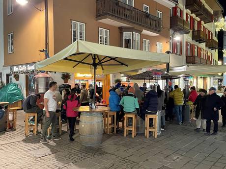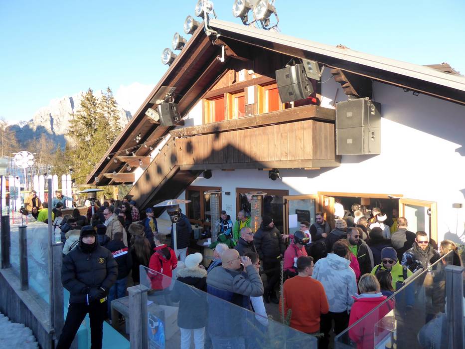 Après-Ski (Hütten, Bars, Schirmbars, Lokale, Party) Cortina d'Ampezzo Generell geht es in Cortina d'Ampezzo ruhiger zu. Schirmbars und lautes Après-Ski findet man nicht. Man lässt den Skitag auf den Hütten gemütlich ausklingen. An der Talstation Socrepes wartet das Chalet Tofane mit Musik und Stimmung an den Wochenenden. Im Ort Cortina d'Ampezzo locken nette Bars in der Fußgängerzone.